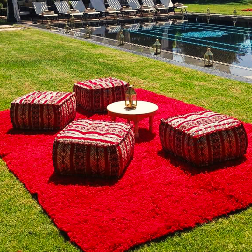 We don’t just rent furniture; we create it. Our agency partners with Marrakesh’s finest blacksmiths, woodcarvers, and weavers to produce custom-designed decor—from brass lamps to hand-loomed textiles—specifically for your event.